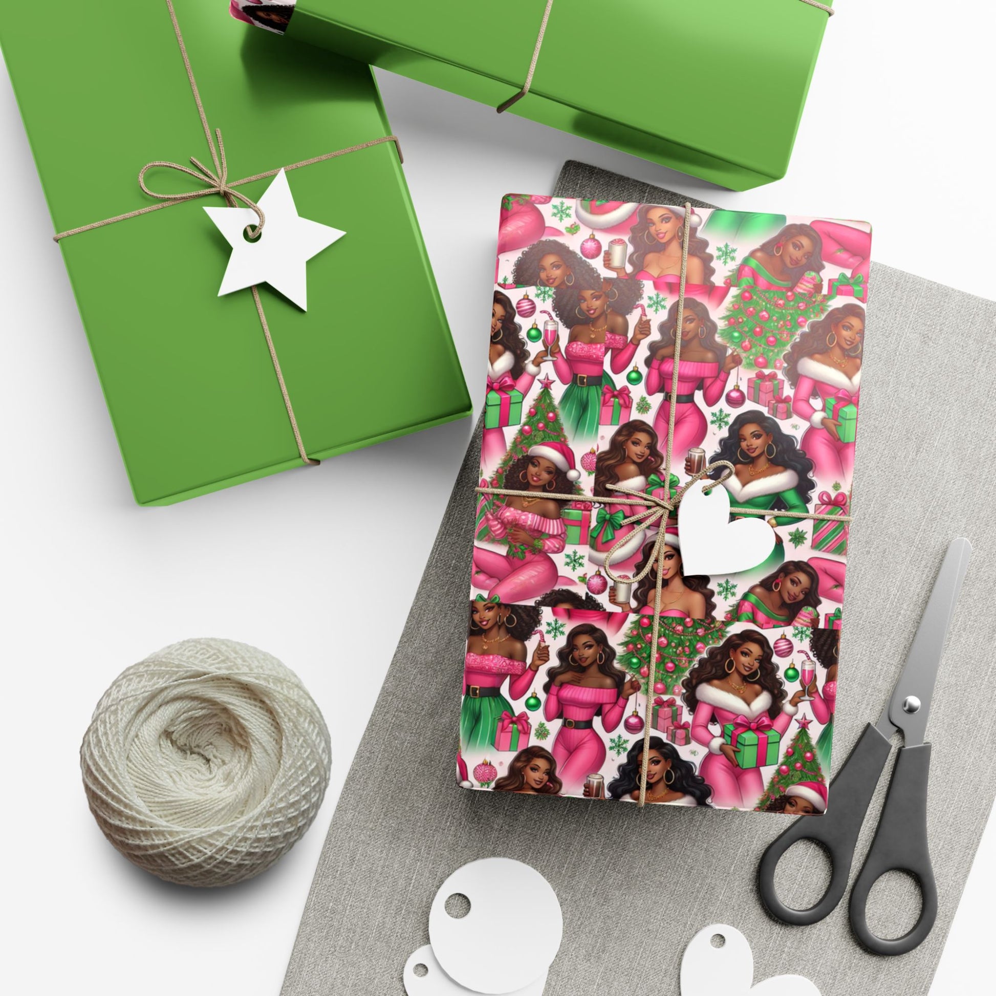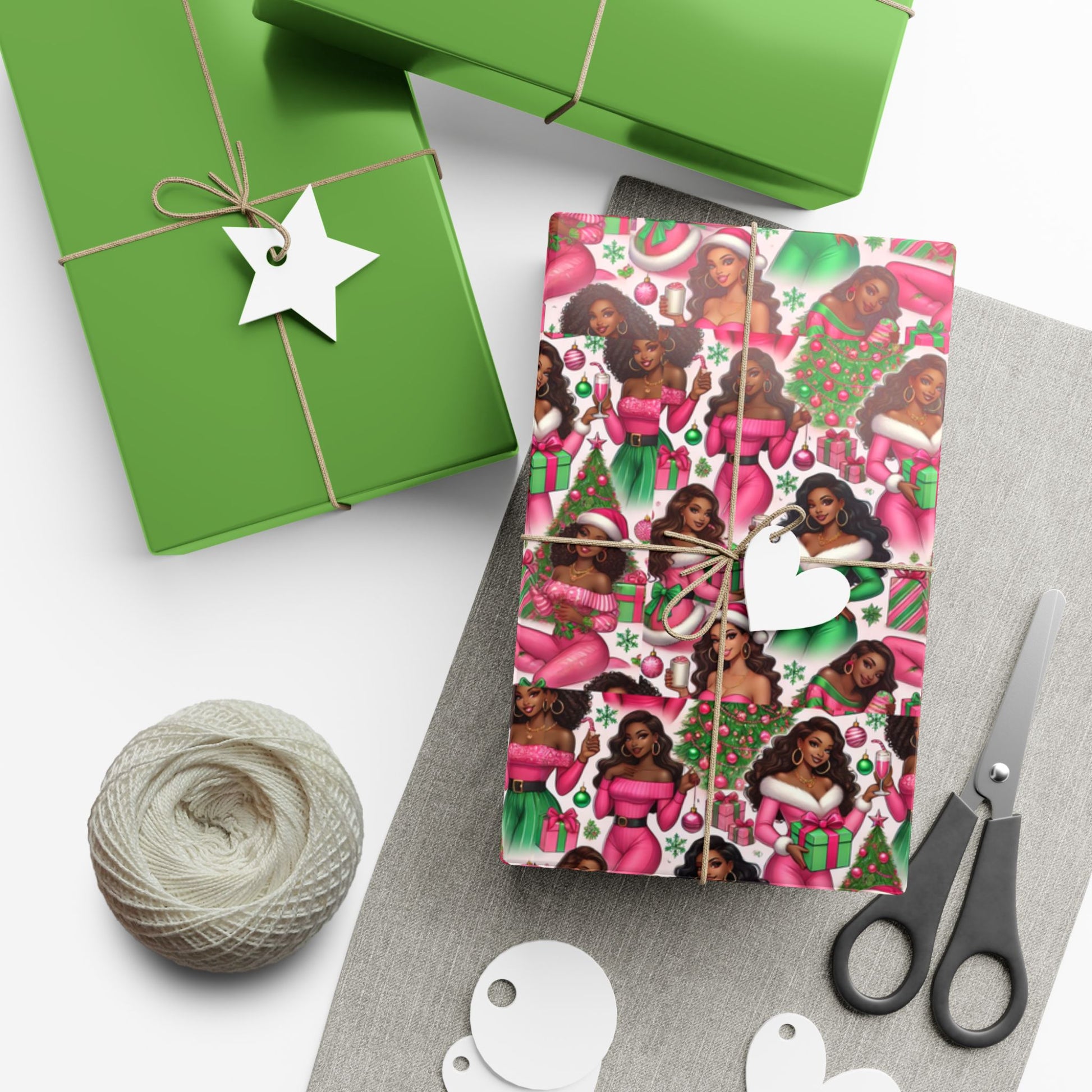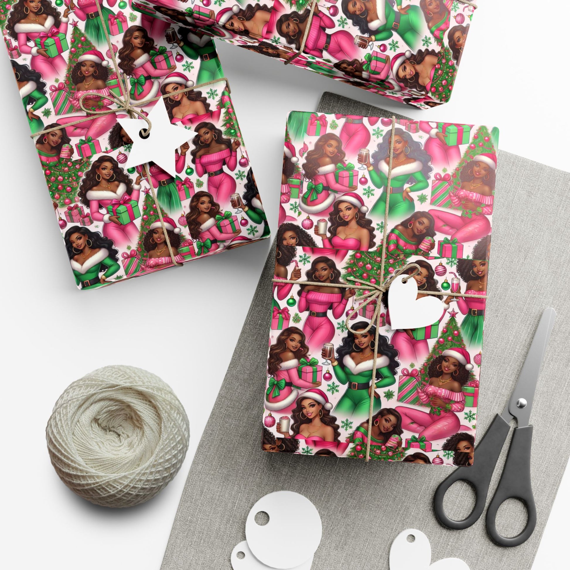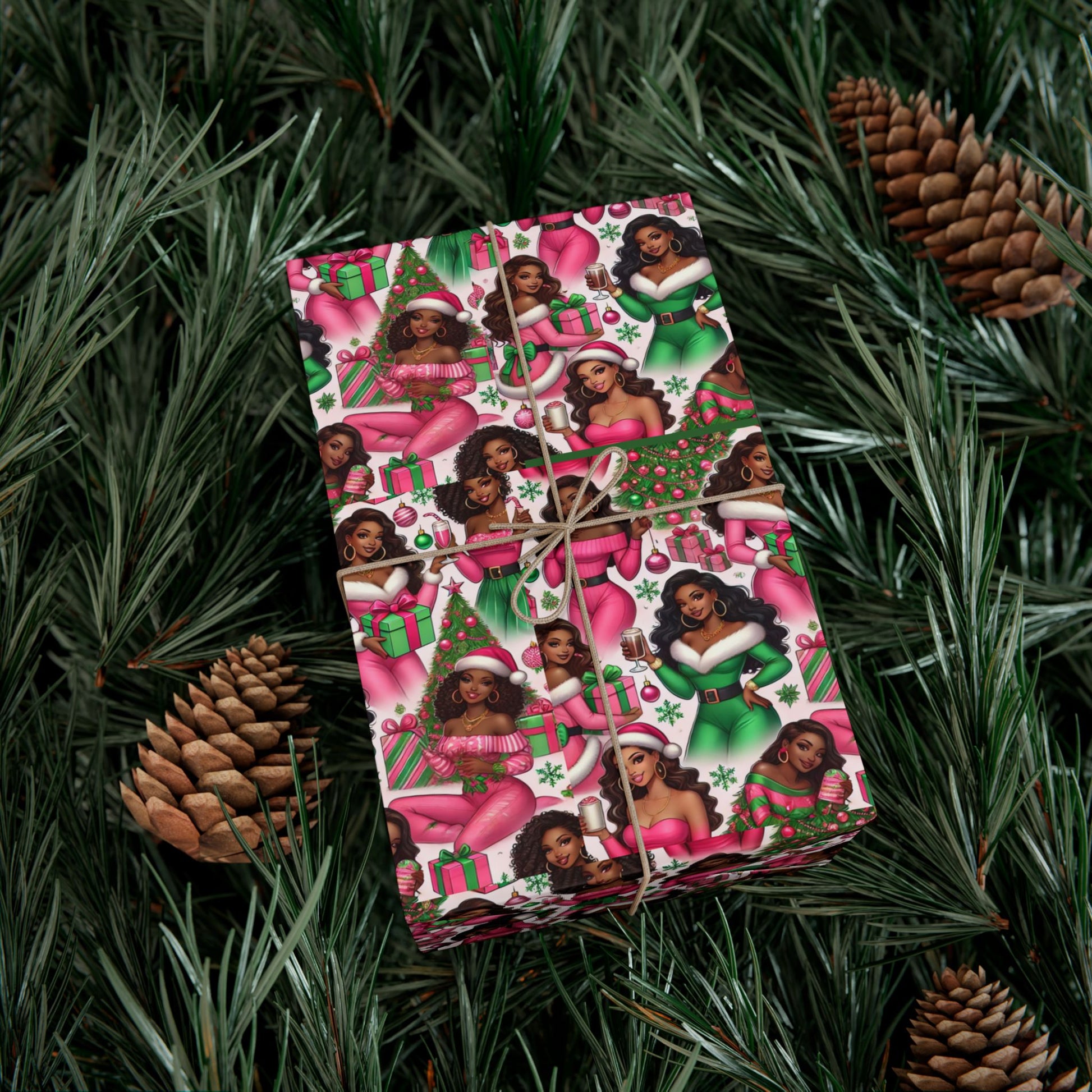 Black Santa Girls Christmas Gift Wrap Paper – Festive Holiday Wrapping Sheets